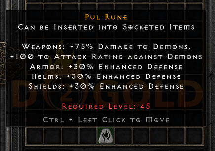 Weapons: +75% Damage to Demons, +100 Attack Rating Against Demons